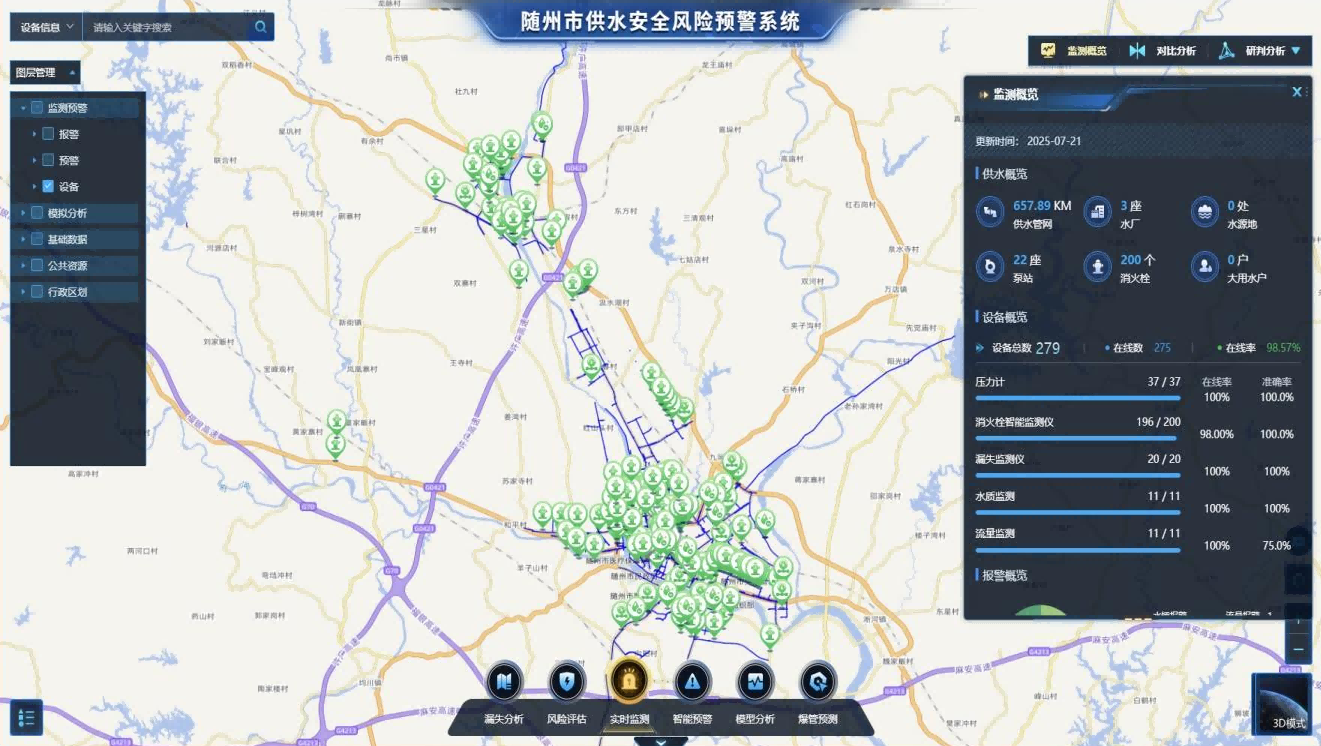 此次智慧水務(wù)建設(shè)的核心成果,是搭建起全市統(tǒng)一的智慧水務(wù)綜合管理平臺。這一平臺猶如功能強(qiáng)大的“中樞神經(jīng)系統(tǒng)”,高效匯聚著全市供水設(shè)施產(chǎn)生的海量實時運(yùn)行數(shù)據(jù)。借助深度的數(shù)據(jù)挖掘、智能分析與可視化呈現(xiàn)技術(shù),實現(xiàn)了從水源、水廠、管網(wǎng)到二次供水乃至用戶終端的全鏈條精細(xì)化管理。它不僅讓供水服務(wù)的響應(yīng)速度得到顯著提升,更使隨州水務(wù)的運(yùn)營效率大幅優(yōu)化,為城市水資源的科學(xué)調(diào)度和高效利用提供了堅實有力的決策支撐。